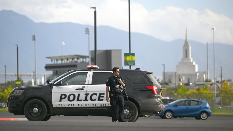 Сотрудник полиции на территории Университета долины Юта после убийства Чарли Кирка. Архивное фото Университет долины Юта (UVU) в…