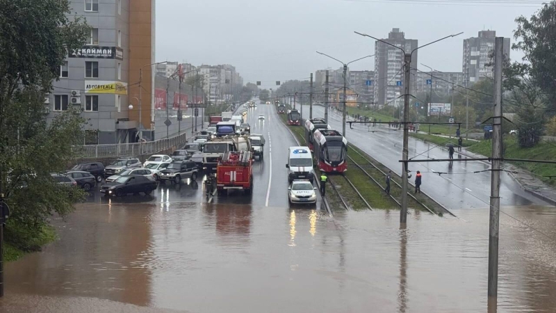 Последствия сильного ливня в Череповце Вологодской области Из-за сильного ливня в Череповце Вологодской области подтопило улицы, дворы и…