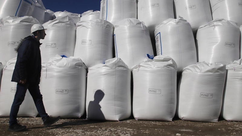 Сотрудник на территории завода ООО «Алмаз Удобрения» по производству водорастворимых и гранулированных удобрений. Архивное фото Россия по итогам…