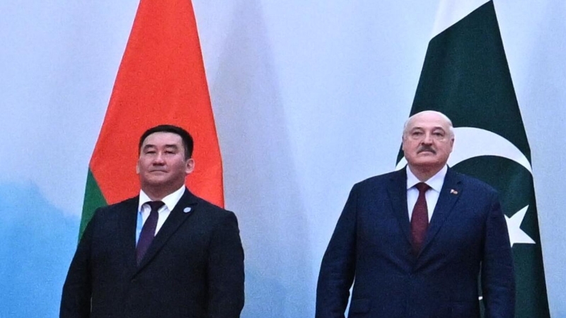 Директор Исполнительного комитета Региональной антитеррористической структуры ШОС Уларбек Шаршеев (слева) и президент Белоруссии Александр Лукашенко на саммите ШОС.…