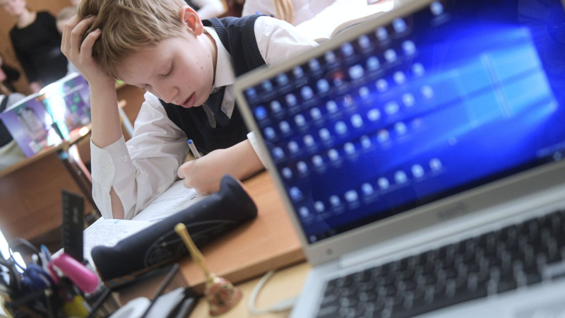 Ученик во время электронного урока в московской школе. Архивное фото Блокировка готовых домашних заданий в интернете будет носить…