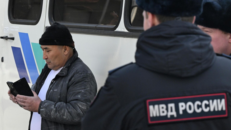 Задержанный иностранный трудовой мигрант возле автобуса полиции. Архивное фото Более 370 иностранных граждан доставлены в полицию в результате…