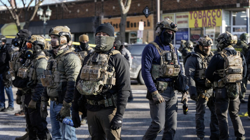 Федеральные агенты на месте перестрелки в Миннеаполисе, США. 24 января 2026 Офицер пограничного патруля в Миннеаполисе стрелял в…