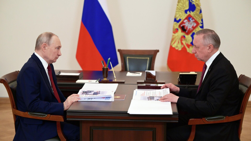 Президент РФ Владимир Путин и губернатор Санкт-Петербурга Александр Беглов во время встречи Губернатор Санкт-Петербурга Александр Беглов доложил президенту…
