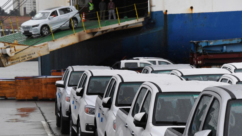 Разгрузка автомобилей, прибывших грузовым судном из Китая. Архивное фото Россияне, которые хотели купить китайский автомобиль с пробегом на…