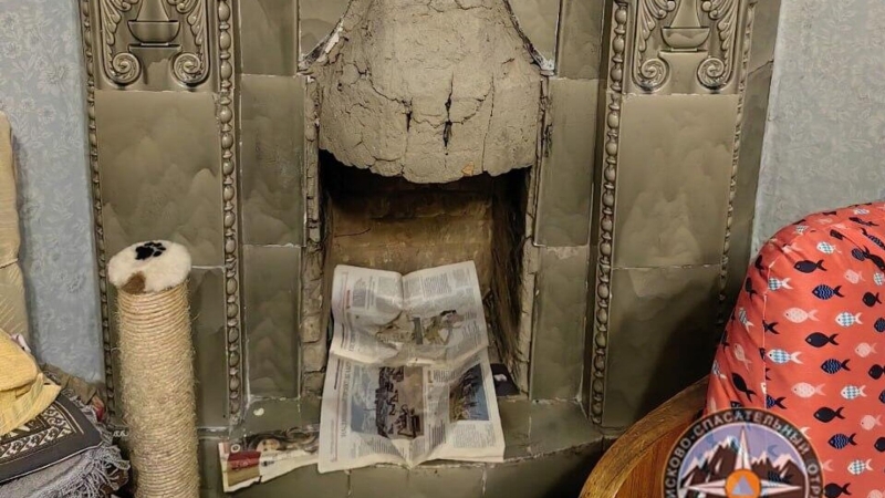 Дымоход камина в квартире дома 1897 года постройки в центре Санкт-Петербурга . Спасатели вызволяют рыжего кота из дымохода…