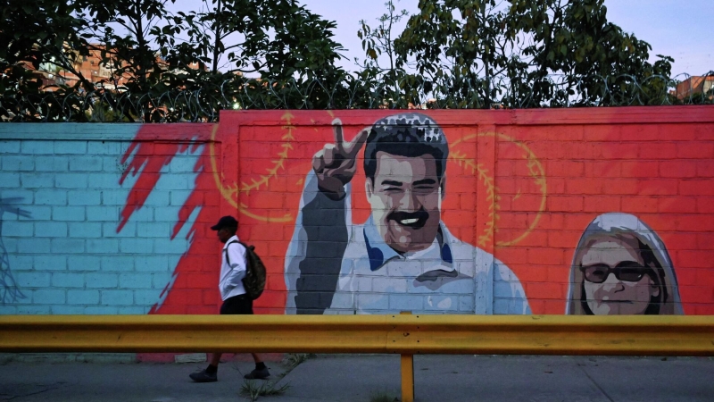 Мужчина проходит мимо изображения президента Венесуэлы Николаса Мадуро и его жены Силии Флорес в Каракасе. Архивное фото США…