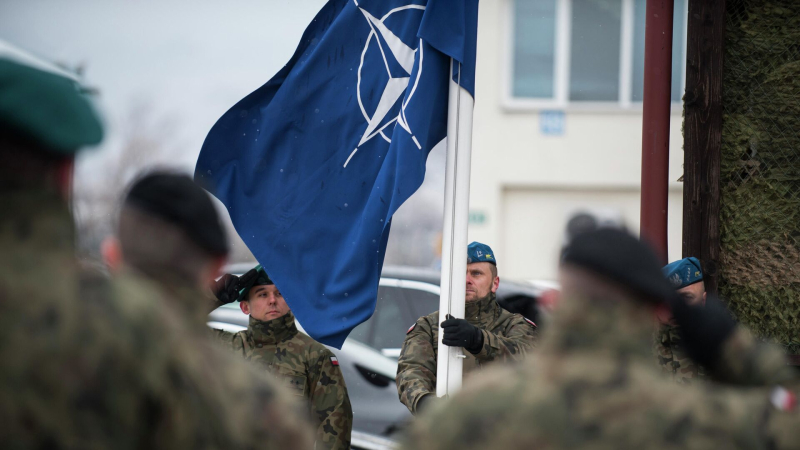 Польские военнослужащие поднимают флаг НАТО . Архивное фото Предоставление Украине гарантий безопасности со стороны НАТО, включающих там размещение…