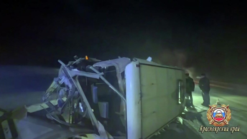 Последствия ДТП с участием автобуса ПАЗ и грузового автомобиля в Красноярском крае. Кадр видео. Архивное фото Трое из…
