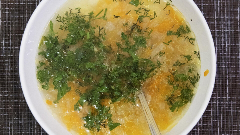 Суп из куриных грудок на столе. Архивное фото Каши на воде, бульон, курица, рыба, творог, овощи, ягоды и…