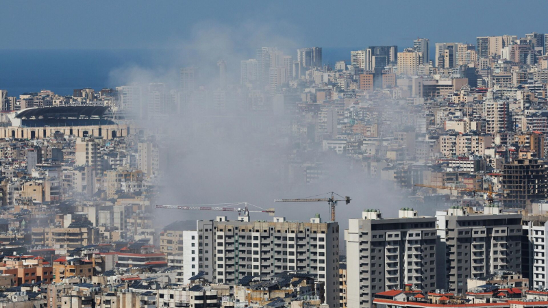 Дым на месте удара по Бейруту. Архивное фото Армия Израиля нанесла удары в направлении здания ливанского телеканала Al-Manar,…