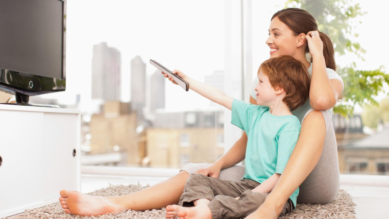 Мама с сыном смотрят телевизор . Архивное фото Россияне будут отдыхать три дня — с 12 по 14…