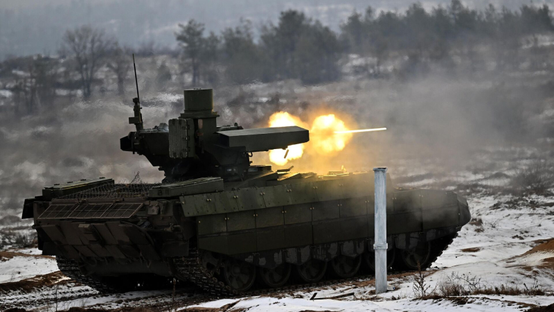 Боевая машина поддержки танков БМПТ «Терминатор» военнослужащих Центрального военного округа ведет учебный огонь в зоне специальной военной операции.…