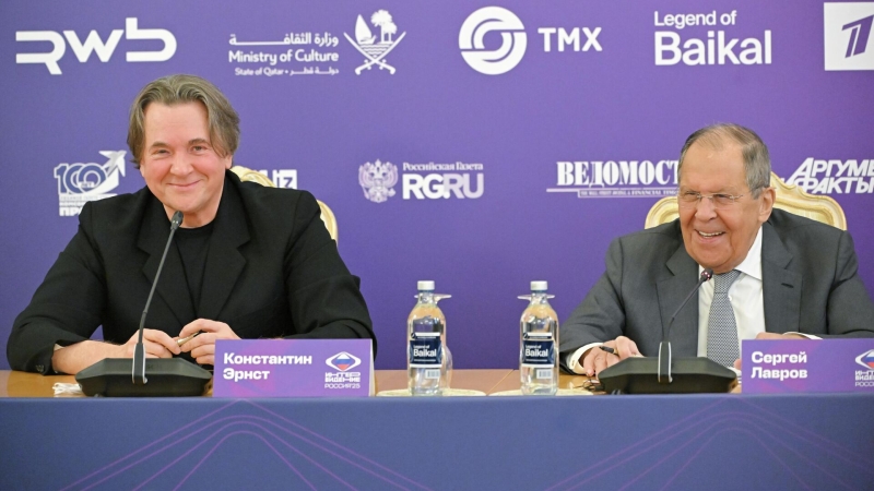 Генеральный директор Первого канала Константин Эрнст и министр иностранных дел РФ Сергей Лавров на пресс-конференции, посвященной проведению международного…