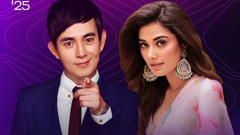 Ведущие конкурса «Интервидение» актриса Стэфи Патель и телеведущий Мэнг Лэй Актриса Стэфи Патель и телеведущий Мэнг Лэй стали…