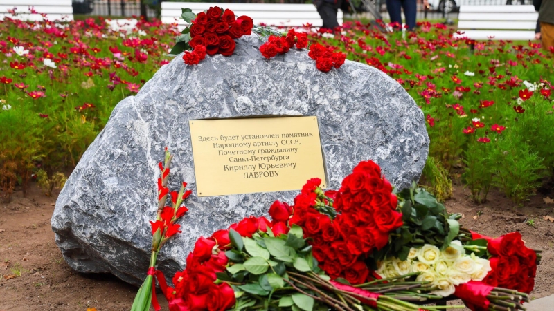 Закладной камень на месте будущего памятника народному артисту СССР Кириллу Лаврову в Санкт-Петербурге Закладной камень на месте будущего…