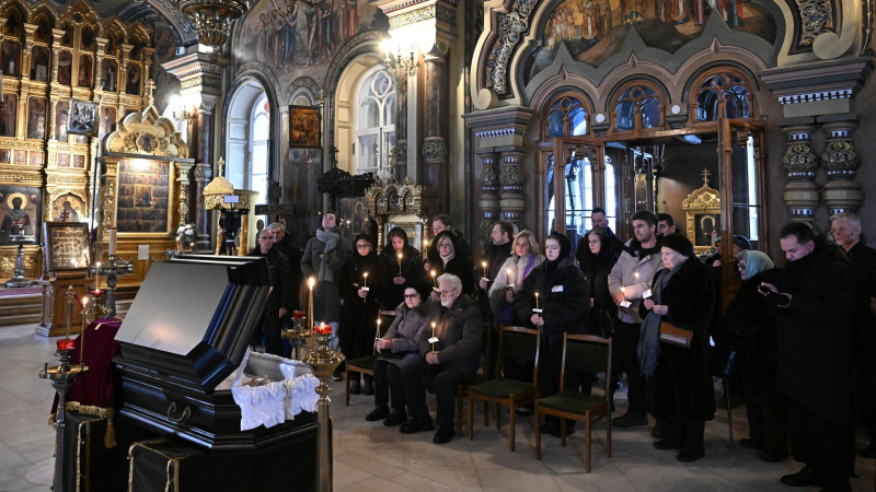 Отпевание во время церемонии прощания с советским диктором, телеведущей Светланой Жильцовой в храме святителя Николая Чудотворца на Рогожском…