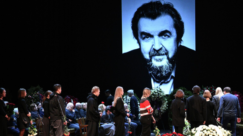Церемония прощания с ректором Школы-студии МХАТ Игорем Золотовицким в МХТ имени А. П. Чехова в Москве Люди собираются…