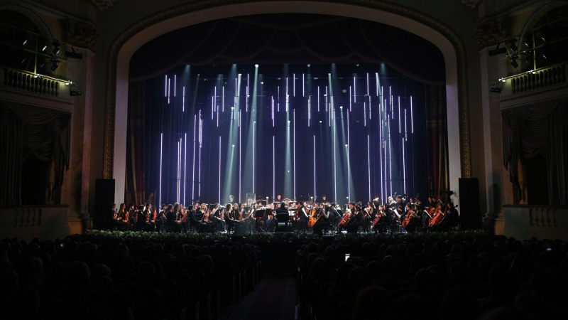Всероссийский юношеский симфонический оркестр выступает на гала-концерте в рамках закрытия XIX Зимнего международного фестиваля искусств под руководством Юрия…