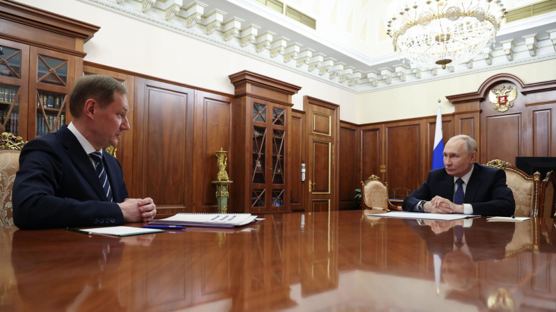 Президент РФ Владимир Путин и руководитель Федерального казначейства Роман Артюхин во время встречи Глава Федерального казначейства Роман Артюхин…