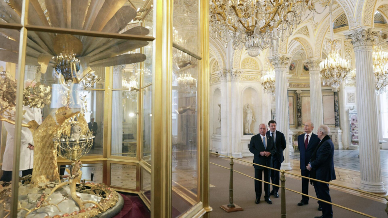 Президент РФ Владимир Путин и верховный правитель Малайзии Султан Ибрагим во время посещения Государственного Эрмитажа в Санкт-Петербурге Президент…