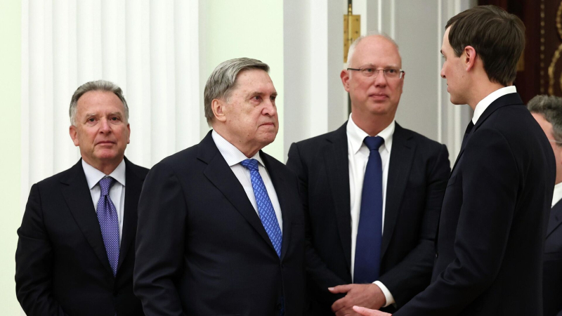 Президент России Владимир Путин, специальный посланник президента США Стивен Уиткофф, зять Дональда Трампа Джаред Кушнер и комиссар Федеральной…