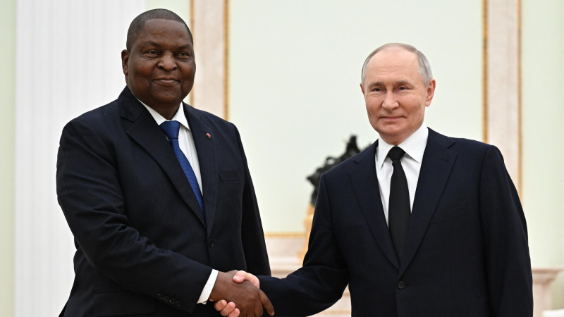 Президент РФ Владимир Путин и президент ЦАР Фостен Арканж Туадера во время встречи. Архивное фото Президент России Владимир…