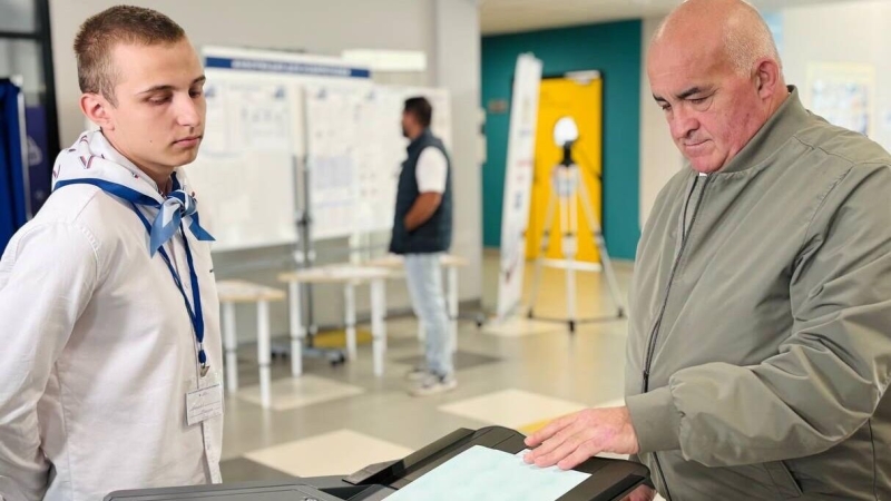 Мужчина голосует на выборах губернатора Еврейской автономной области на избирательном участке в городском дворце культуры в Биробиджане Явка…