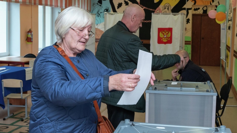 Мужчина голосует на избирательном участке №952 в Тамбове В российских регионах стартовал третий и последний день выборов разного…
