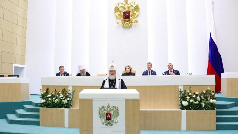 Патриарх Московский и всея Руси Кирилл во время выступления в Совете федерации РФ Патриарх Московский и всея Руси…