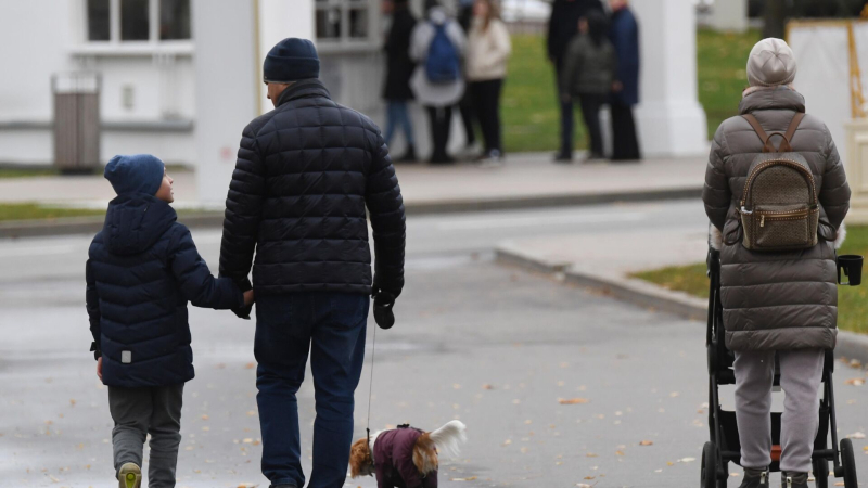 Мужчина с ребенком и собакой гуляют по ВДНХ Нужно законодательно установить проживание ребенка после развода родителей то с…