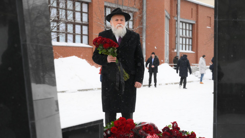 Глава Федерации еврейских общин Александр Борода на церемонии возложения цветов к Памятнику героям сопротивления в концлагерях и гетто…