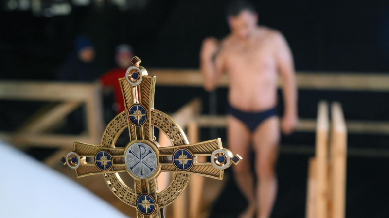 Священнослужитель совершает обряд освящения воды во время крещенских купаний. Архивное фото Крещенские купания, отмененные из-за ночной угрозы удара…