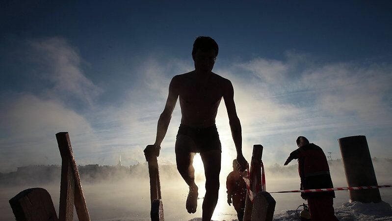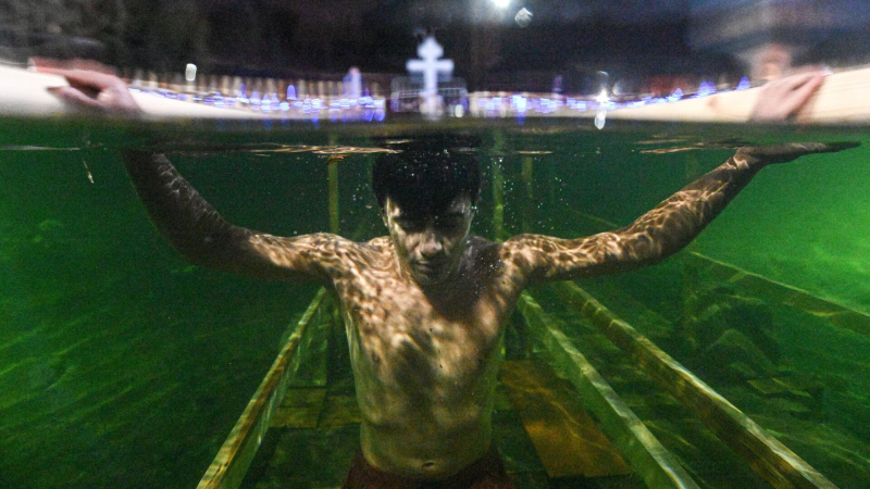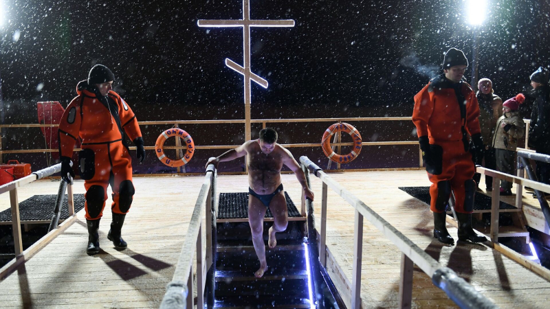 Верующий во время крещенских купаний на территории Измайловского кремля в Москве. Архивное фото Крещенские купания начались в Москве,…