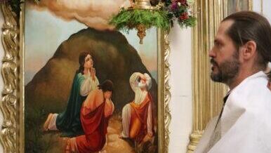 Феофил III . Архивное фото Патриарх Иерусалимский Феофил III освятил изготовленную в России копию Гефсиманской плащаницы Божией Матери,…