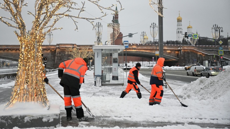 Уборка снега на Москворецкой набережной в Москве Русская православная церковь довольна работой московских властей в рождественские дни, сообщили…