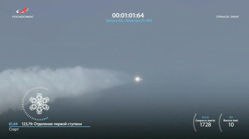 Ракета «Протон-М» вывела спутник «Электро-Л» №5 на околоземную орбиту. Кадр трансляции Ракета «Протон-М», стартовавшая с космодрома Байконур, вывела…