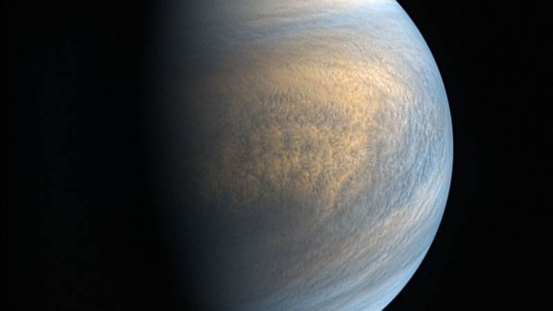 Фотография Венеры в оптическом и ультрафиолетовом диапазоне, полученная камерами зонда «Акацуки». Архивное фото Венеру и Юпитер можно увидеть…