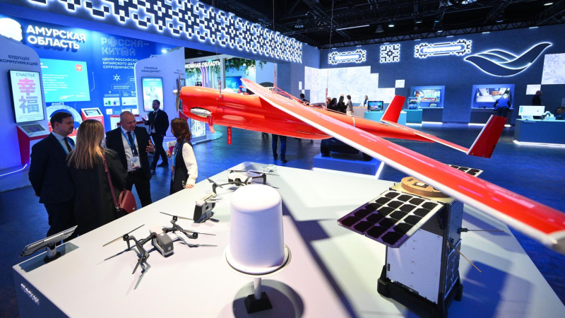 Беспилотник «Геоскан» на выставке «Made in Russia» в рамках международного экспортного форума «Сделано в России» в Москве. Архивное…