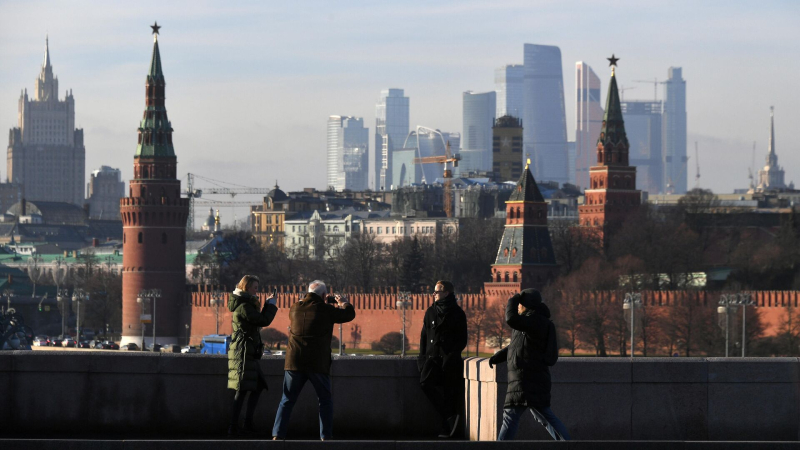 Прохожие фотографируются на Большом Москворецком мосту в Москве. Архивное фото Москва, Санкт-Петербург и Татарстан стали самыми популярными направлениями…