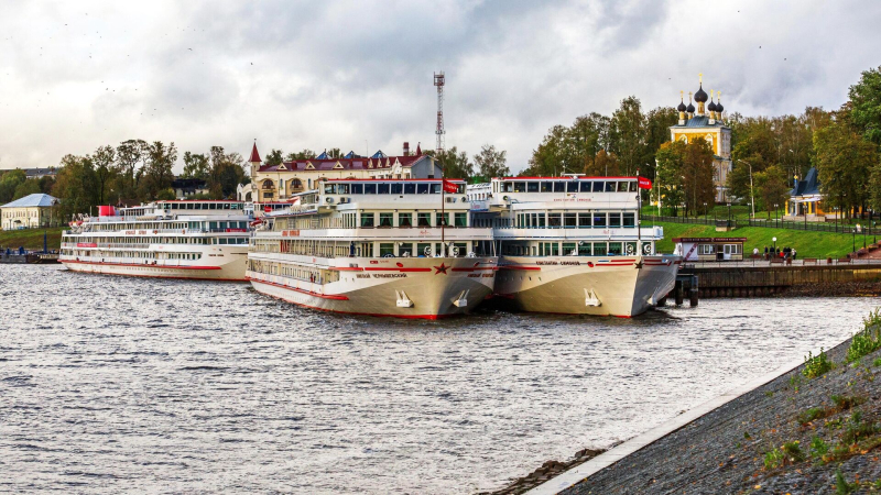 Туристические теплоходы у центрального городского причала в городе Угличе Ярославской области Речные круизы на лето раскуплены уже на…