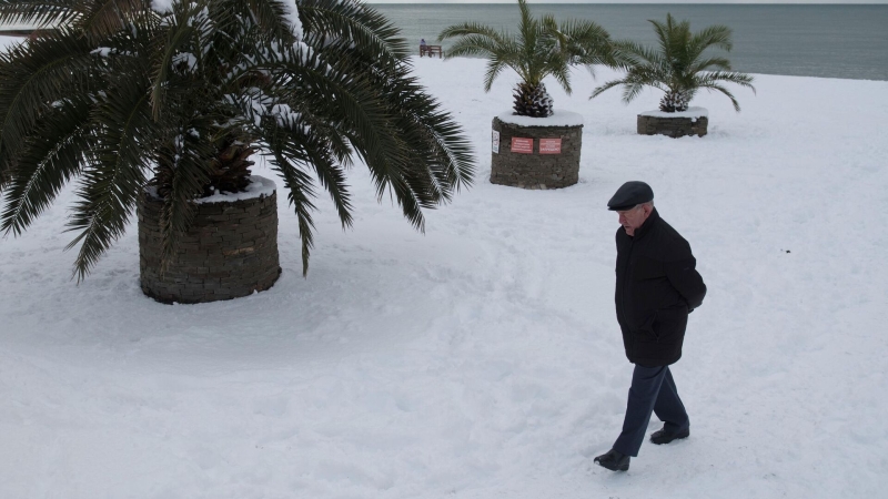 Мужчина гуляет по центральному пляжу в Сочи. Архивное фото Путешествие по городам и курортам России в зимний сезон…