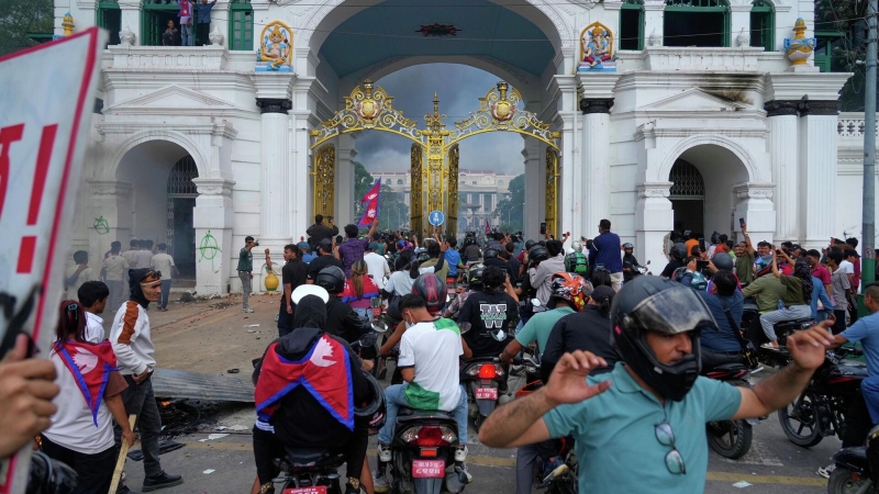 Протестующие в комплексе Сингха Дурбар в Катманду В Непале может сейчас находиться не более 350-400 туристов РФ, из…